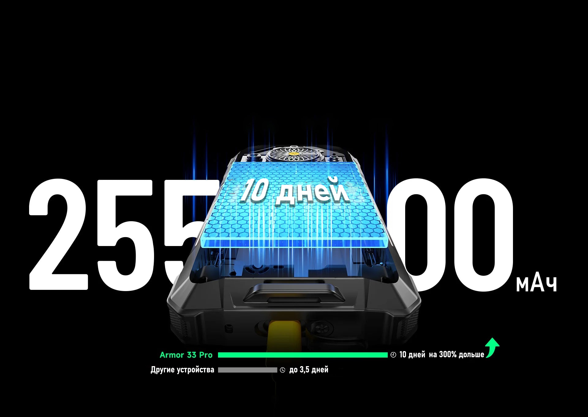 3. Ulefone Armor 33 защищён от брызг, воды, пыли, протестирован в контролируемых лабораторных условиях IP-68 по стандарту IEC 60529 (максимальная глубина до 1.8 метров в течение 30 минут). Зарядное устройство и аксессуары не защищены от влаги. Защита от влаги и пыли может снижаться по мере естественного износа. Не заряжайте смартфон после контакта с влагой. Гарантия не распространяется на любые повреждения, вызванные контактом с влагой или механическими повреждениями.